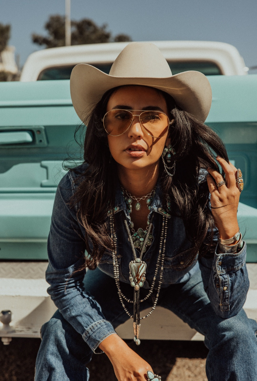 The tips are one of my favorite parts: stamped with older ranch brands and finished with a stone dangling from each end for a little extra character. The leather was hand-braided by Clint Gregory of Custom Cowboy Tack, so the craftsmanship runs straight through every detail.