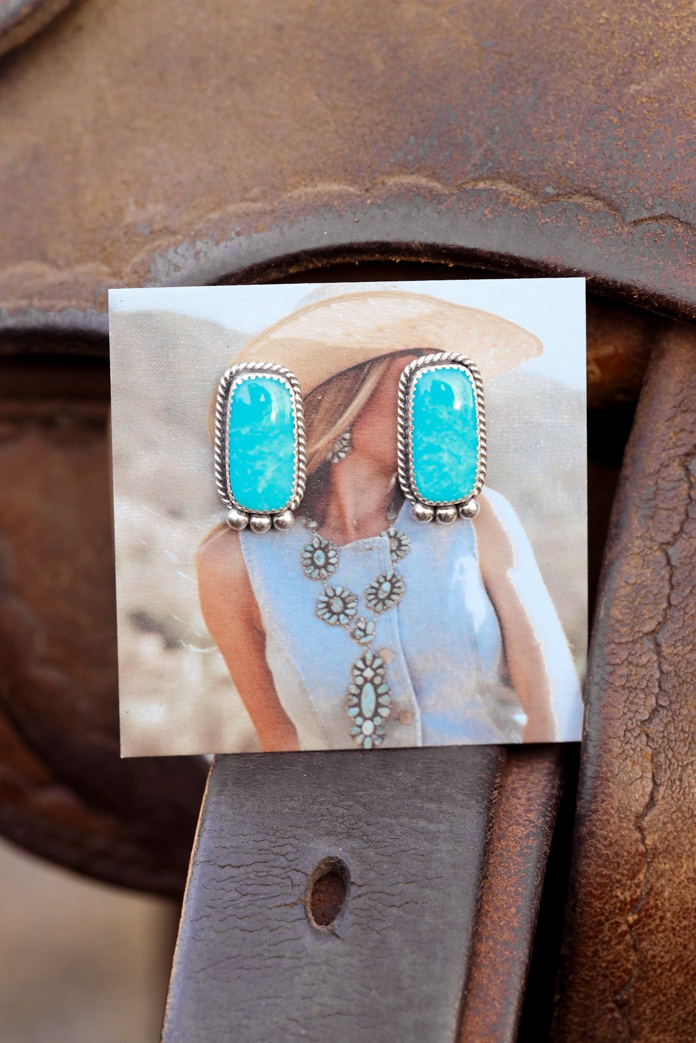 Elevate your errand running outfit with a pop of turquoise! This set is built with Kingman Turquoise, mined in the north western mountains of Arizona.